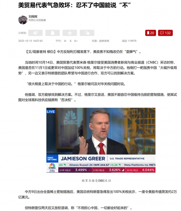 中方在10月初抛出新的稀土管制措施,对接下来可能发生的情况,也肯定心中有数。