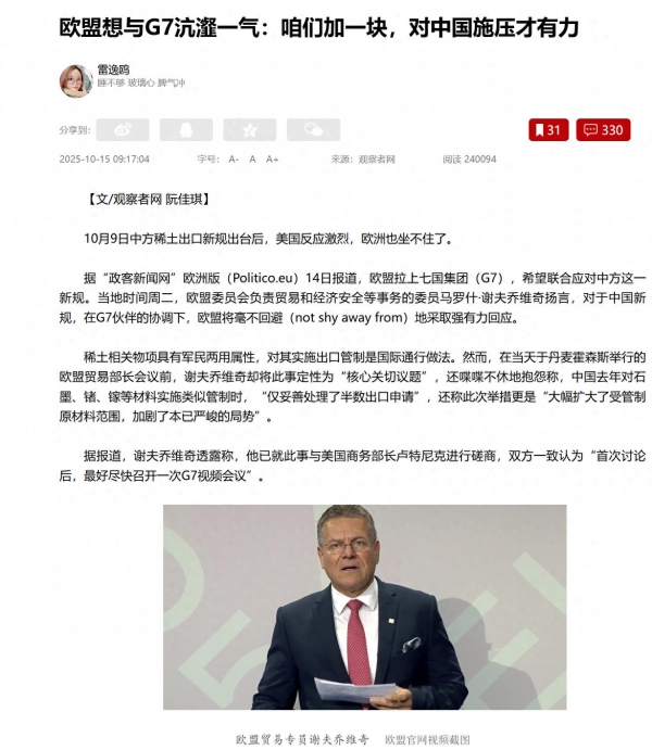 说白了,如果美欧就此承认自己对中国的稀土管控无计可施,那么就是承认了中国在科技战中,有一张足以从源头掐断美欧尖端芯片供应链的王牌。