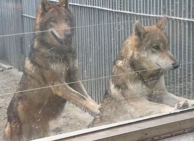 去趟动物园看到这幕,真是让人心里发堵。隔着玻璃,那几只狼只要看到人手里拿着吃的,立马两条后腿直立,两只前爪合在一起上下晃动,眼神死死盯着你。这哪是野性十足的狼,分明是被现实磨平棱角的狗。去年这狼舍还是露天的,有游客随手往下扔了根胡萝卜,几只狼一拥而上抢夺,其中一只叼着胡萝卜还得赶紧转过身背对同伴,生怕被抢走。仔细看当时的画面,这些狼早就出现了在原地8字转圈跑的怪异举动。在动物世界里,这种刻板行为就是精神极度压抑的证明。