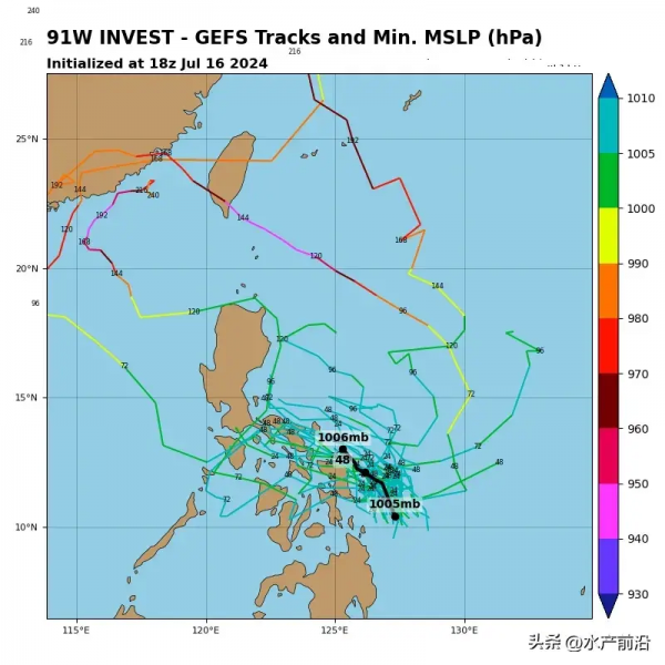 GEFS预报的91W概率图,基本上不是很看好,但是如果91W能够撑过20日以后,那就值得关注了,因为到时副高可能会东退,给91W的发展创造条件。