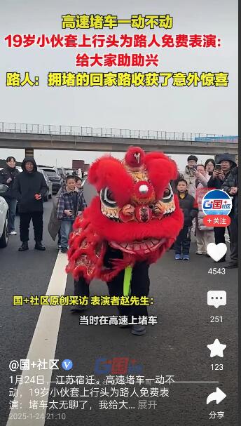 相比其他堵车时的消遣方式,赵先生的舞狮表演无疑更具特色和看点。他的表演不仅展示了中国传统文化的魅力,也为堵在路上的司机们带来了一丝惊喜和欢乐。这样的行为,在春运这个特殊时期,更显得独特而有意义。