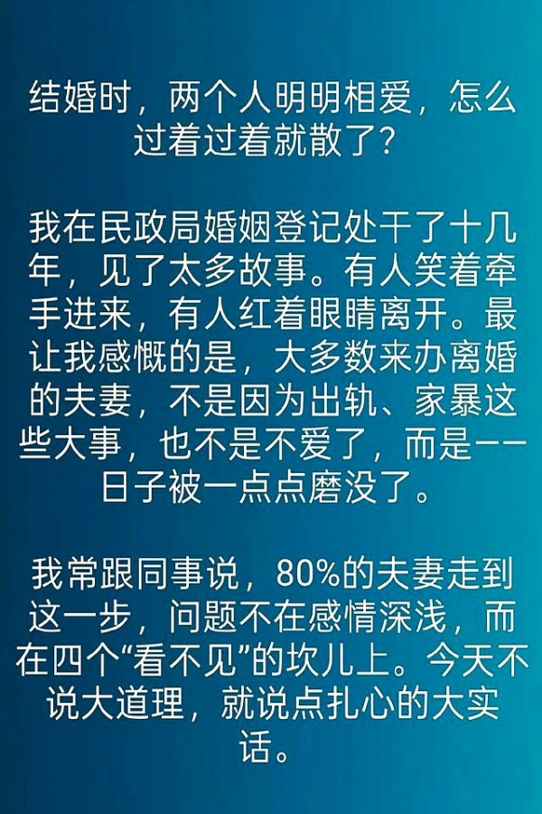 八成离婚盖章那天,两个人还坐同一辆出租车来,却没人记得当初为什么结婚。
