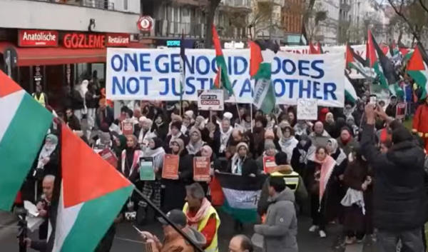 去年,欧洲多国爆发集会,抗议者要求本国政府停止向以色列运送武器装备 视频截图