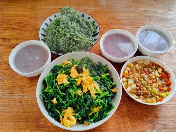 我家早餐挺简单的,婆婆每天天还没亮就去田埂上找荠菜和麦蒿,回来还得一遍遍挑,前两天她特意留了块地专门种野菜,说城里头买不到这么干净的,蒸菜的做法也简单,头天把菜洗了晾着,早上撒点面粉拌一拌,上锅蒸十分钟就好了。
