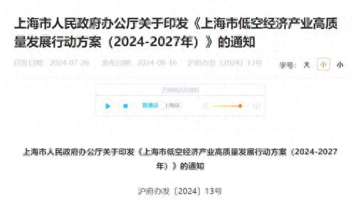 附全文上海市人民政府办公厅关于印发《上海市低空经济产业高质量发展行动方案(2024-2027年)》的通知