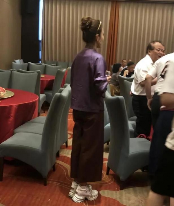 朱迅穿着一身中式休闲装,脚踩运动鞋,整体感觉很随意。