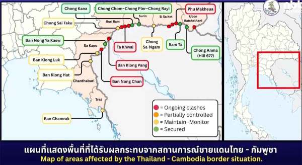 受柬泰冲突影响的两国边境地区。图片来源 泰国政府