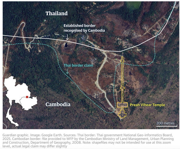 柏威夏寺周边局势。图片来源 英国《卫报》