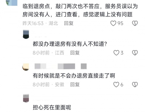 也有网友站在酒店一方,认为临到退房点,敲门两次也不答应,服务员误以为房间没有人,进门查看,感觉逻辑上没有问题。