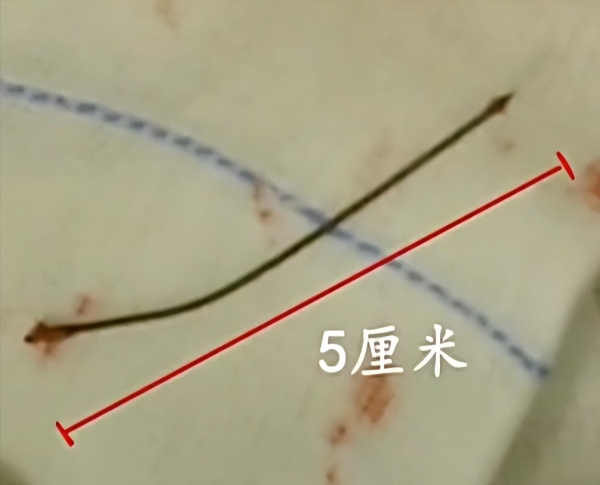 当看到那根针的时候,医生还是忍不住惊呼,这根针足足有4厘米长。
