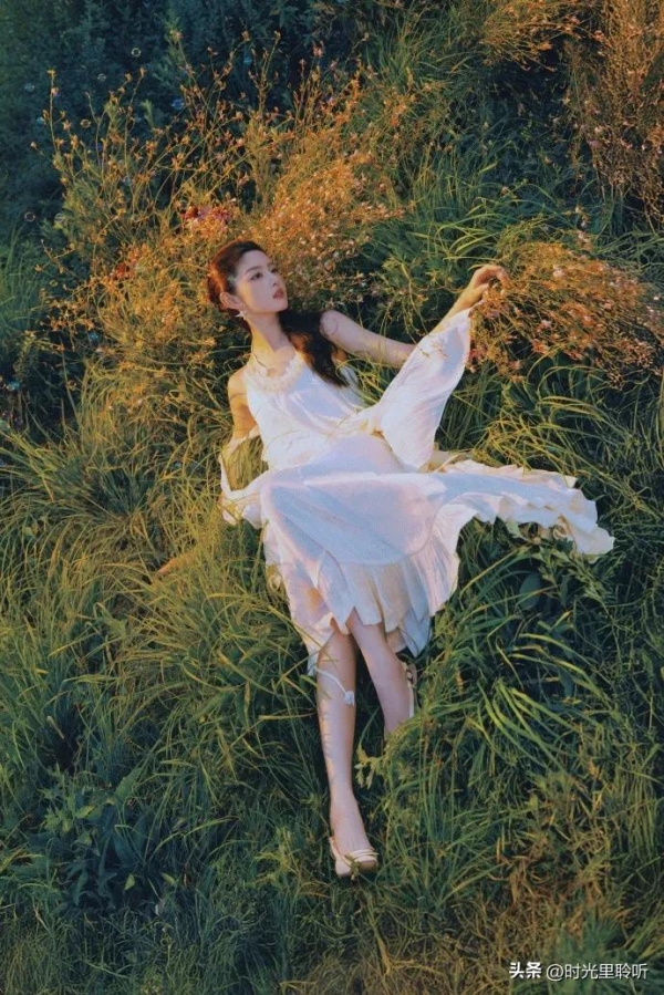 谁懂啊!赵晴趴在草丛里这组图,直接把清新纯欲焊在身上了!白色吊带裙一挂,肩颈线薄得像片羽毛,手臂纤细却带着柔美感,腰臀被裙摆轻轻一衬,比例好到像自带滤镜!