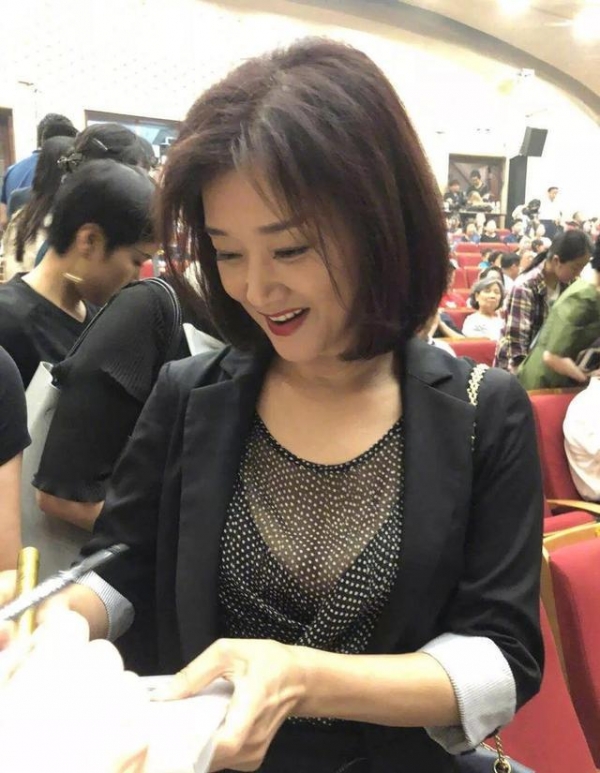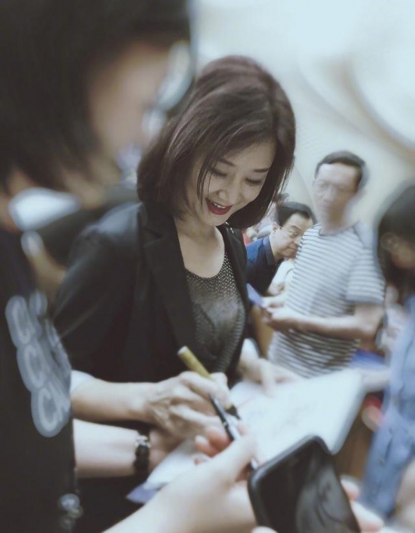 由于现场的粉丝比较热情,还有人找她签名留念。宋祖英对着粉丝们要求的签名也是和蔼可亲,低头的一瞬间也是笑容满面,这个笑容动人心弦,非常亲民。