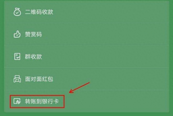 第二步,在弹出的界面中选择"转账到银行卡"。
