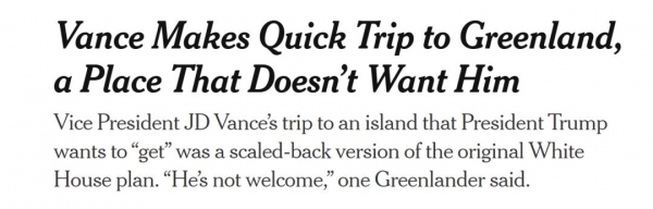 去年3月,副总统万斯对格陵兰岛进行了一次颇具争议的访问。格陵兰岛居民一直抵制此次访问,官方也表示不欢迎他的到来。