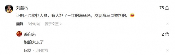 证明不是塑料人参。有人泡了三年的海马酒,发现海马是塑料的。