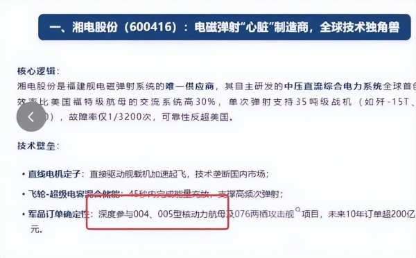 另一方面,在某军供企业的宣传资料中,曾明确表示该公司研发的中压直流综合电力系统是福建舰电磁弹射系统的唯一供应商,同时该公司称自己"深度参与004、005型核动力航母及076两栖攻击舰项目"。放着这份资料是否属实不谈,倘若它真的属实,那么这似乎也间接说明了004型航母将采用核动力作为动力来源。