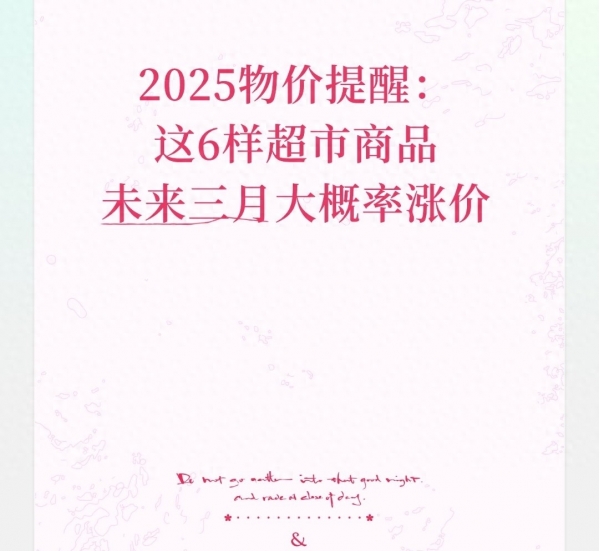 过日子精打细算的人都知道,买东西瞅准时机很重要。尤其是随着季节变化和节日临近,不少超市商品的价格会跟着波动。根据2025年12月国家发改委发布的《民生商品价格趋势预测报告》以及各大商超的采购数据,未来三个月(2025年12月-2026年2月),这6样商品大概率会迎来价格上涨,逛超市时遇到了不妨及时入手,早买真能省下不少钱。