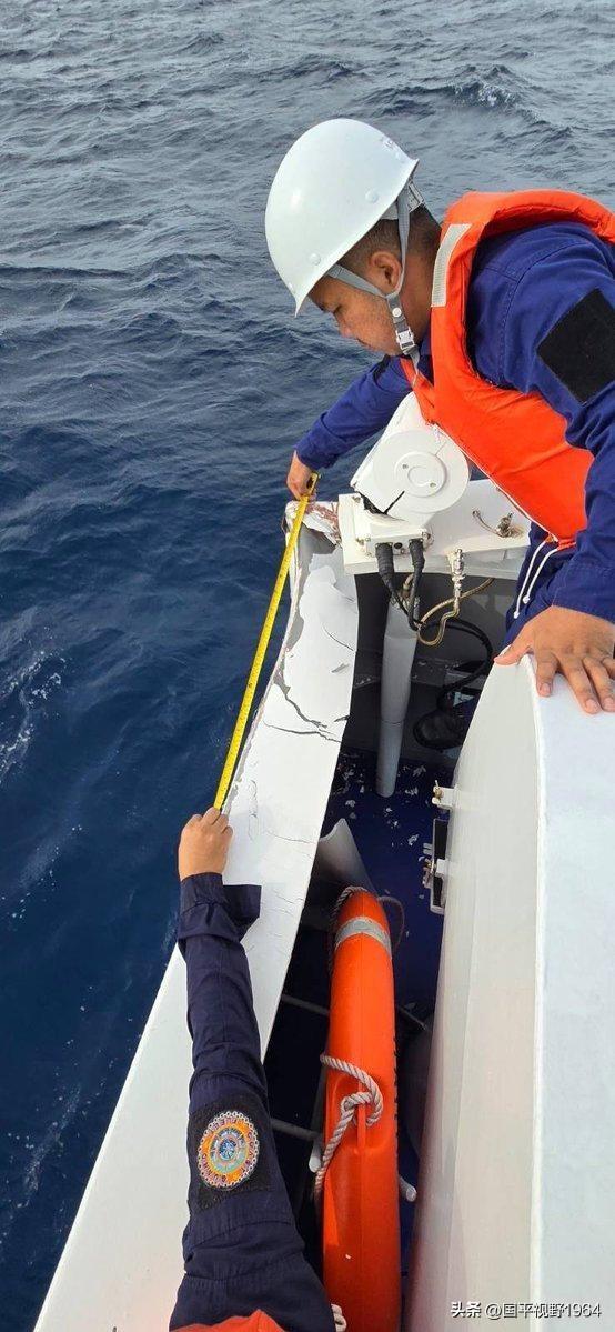 杰伊·塔里拉在X(推特)上发布的菲律宾9701号巡逻舰在"主动撞击"中国海警5205巡逻舰之后情况,显示这艘菲律宾海警满载排水量2600吨的旗舰出现了至少一个大洞,并造成了其他损坏。