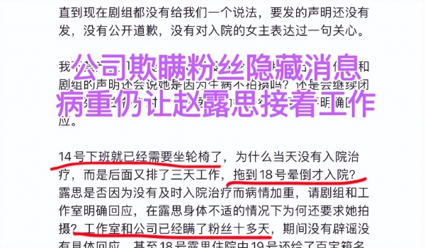 此外,赵露思在生病期间,工作室的一些操作也让网友们感到不满。比如,工作室在发布病情声明时,并没有提供太多详细的信息,这让网友们觉得他们是在故意隐瞒一些事情。