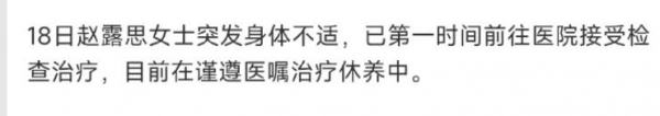 随后,赵露思工作室发布声明,证实她身体不适,工作也随之暂停。