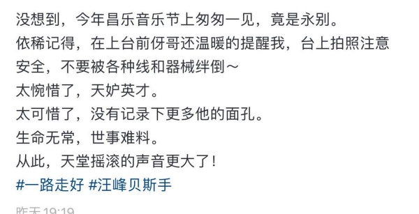 四月份刚见面,笑脸还在,说的话还不远,好像昨天的事。后来消息传来,说得了胃癌,大家都不敢信。从爱音乐到关心别人,总是温柔,总是帮着提醒安全。有些面容有棱角,心却特别软。