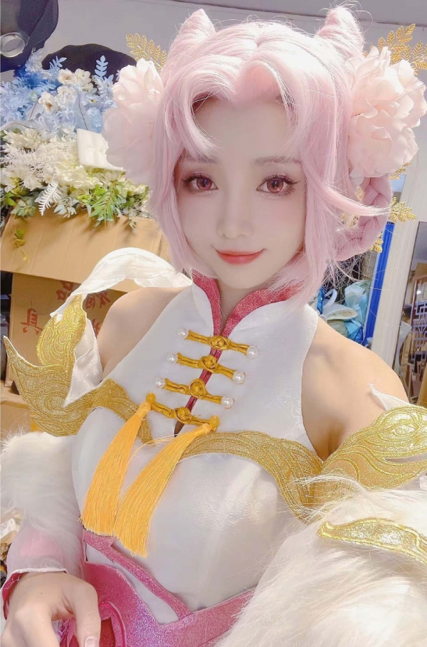 而博主COS的嫦娥造型也是特别的好看,本身博主的颜值就比较高,COS出来的嫦娥和游戏中的嫦娥也有比较高的还原度,不过比较可惜的是没有展露博主姣好的身材。