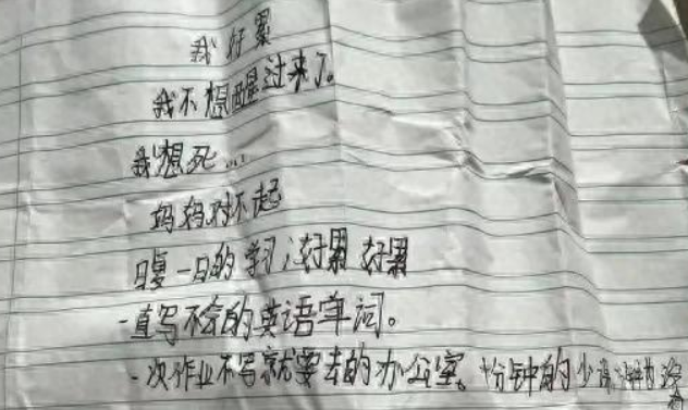 近期@新闻夜航 报道了江苏12岁女孩许诺自杀事件。她的遗书只有三句话,却藏着最绝望的求救信号:"妈妈,单词不会写,办公室好怕,你们笑我胖……我太累,别救我。"