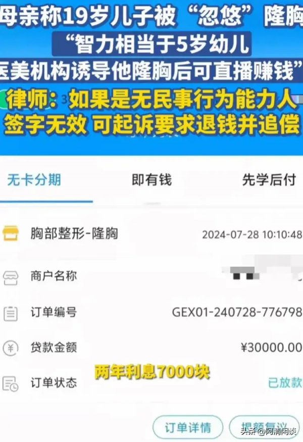 难道为了挣钱,就能不管一个智障小伙子的权利?这里面是不是有医美机构和银行联手的意思?这些问题都得好好查清楚。