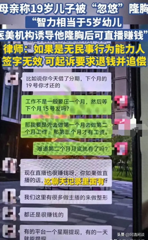 现在这年头,医美火得不行,可湖北发生的这事儿简直太离谱了。有个19岁的小伙子,啥都不懂就被忽悠着去做了隆胸手术!还欠了一屁股债。