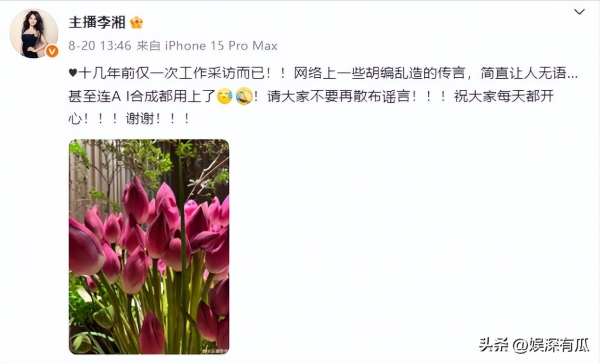 而且从李湘的回应里也能看出来,她肯定是看过AI合成的那些视频了,否则也不能那么愤怒的打了那么多感叹号。