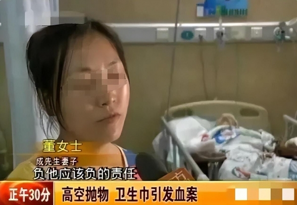 当时董女士正在洗澡,根据董女士之后的采访,她表示自家卫生间空间不大,但是那天洗澡正好厕所里没有袋子了,就暂时将卫生巾在厕所窗台上放一下,但是没想到它居然掉下去了,还很巧地砸到了李先生。