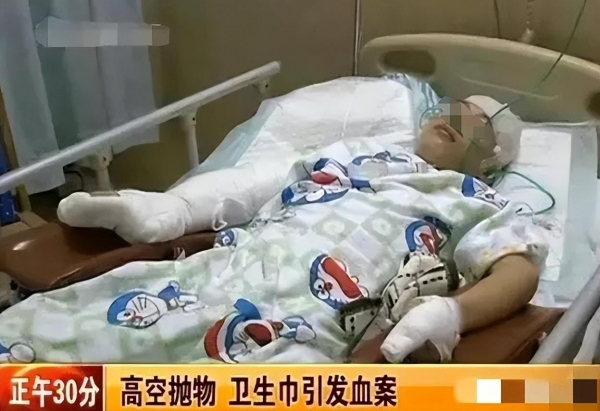 这起事件的起因令人咋舌,一片用过的卫生巾从四楼窗户坠落,砸中了楼下正在乘凉的李先生。