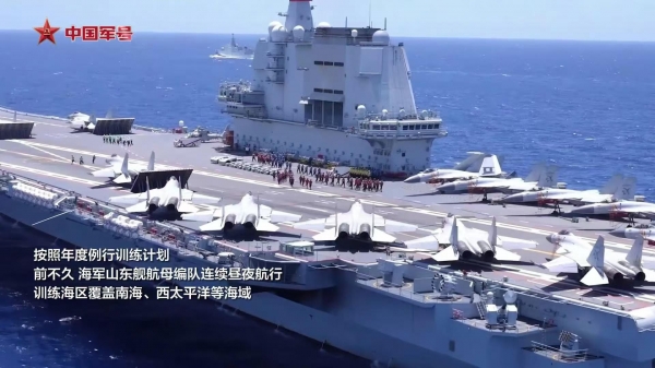 从我国官媒播报的信息来看,山东舰上的多批次歼-15战机挂载实弹依次升空,在预定海域上空完成作战科目后立即返航,随后就又挂载实弹升空,继续执行空中打击任务。值得注意的是,此次歼-15战机除了发射空空导弹外,还发射了多枚反舰导弹,对超视距海上目标实施了饱和式打击。