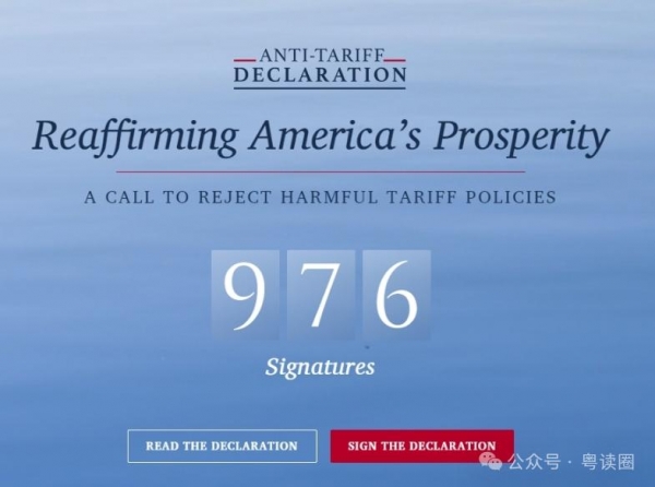 同一天,也就是4月19日当天,包括两位诺贝尔奖获得者在内的数百名经济学家签署了一份"反关税宣言" (下图),批评美国总统特朗普的关税政策,称其具有"误导性"并警告称这可能导致"自找的衰退"。