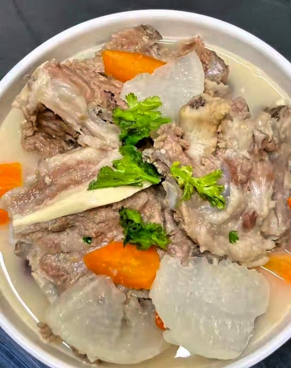 喝粥暖胃,吃肉暖身,萝卜羊肉汤更是冬日进补的不二之选。选带骨羊肉五百克,羊排羊腿肉皆可,带骨才够香浓。白萝卜一根约四百克,胡萝卜一根约两百克,搭配生姜五片、葱段一把、白芷一片、花椒一小撮,去腥提味全靠它们。羊肉先处理,加一勺盐一勺料酒用手抓洗一分钟,去血水杂质,再用清水反复冲洗三遍,水变清澈才算完。冷水下锅焯水,放两片姜一勺料酒,大火煮开撇净血沫,这步马虎不得,不然汤腥得没法喝。继续煮三分钟捞出,用温水洗净,千万别用冷水,肉一激就柴了。砂锅足量温水没过羊肉三厘米,放入姜片葱段白芷花椒,大火烧开转小火盖盖炖一小时,筷子能轻松扎透便是好了。萝卜去皮切滚刀块,别切太小煮烂了,此时放入汤中,再炖二十到二十五分钟,萝卜软烂吸饱肉香,加盐少许白胡椒粉调味,关火焖五分钟,鲜香扑鼻,暖心暖胃。