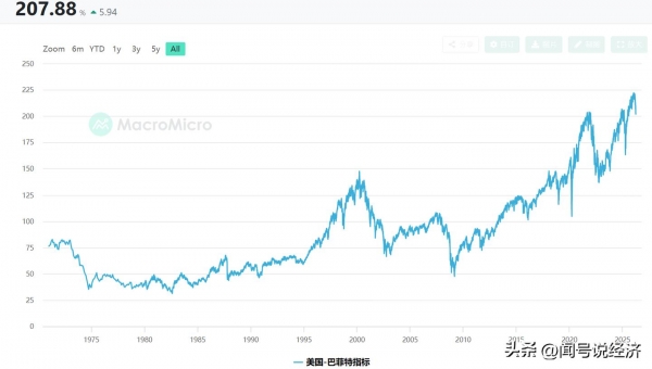 2026 年 3 月最新数据显示,该指标最高时升至 223.08%,创下美股百年历史新高,不仅远超 70%-80% 的合理区间,更是大幅突破了 2000 年互联网泡沫顶峰的 183%、2008 年金融危机前的 137%。而历史上巴菲特历次大规模抄底时,该指标均处于绝对低位,1974 年熊市底部约 35%,2008 年危机底部约 60%,2020 年疫情熔断底部约 110%,当前数值远超所有历史抄底区间。
