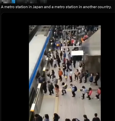 事实上,这种"地点误标"并非首次出现。今年年初,一段拍摄地铁站乘客上下车井然有序的视频在TikTok上走红,许多外国用户纷纷留言称赞"日本人的"秩序感,却未意识到画面拍摄地并非日本。