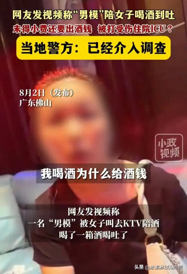近日,广东佛山,一女子在ktv疑似叫了一名男模陪酒,男模陪女子喝酒喝到吐,最后不仅拿不到小费,还被女子暴揍一顿。