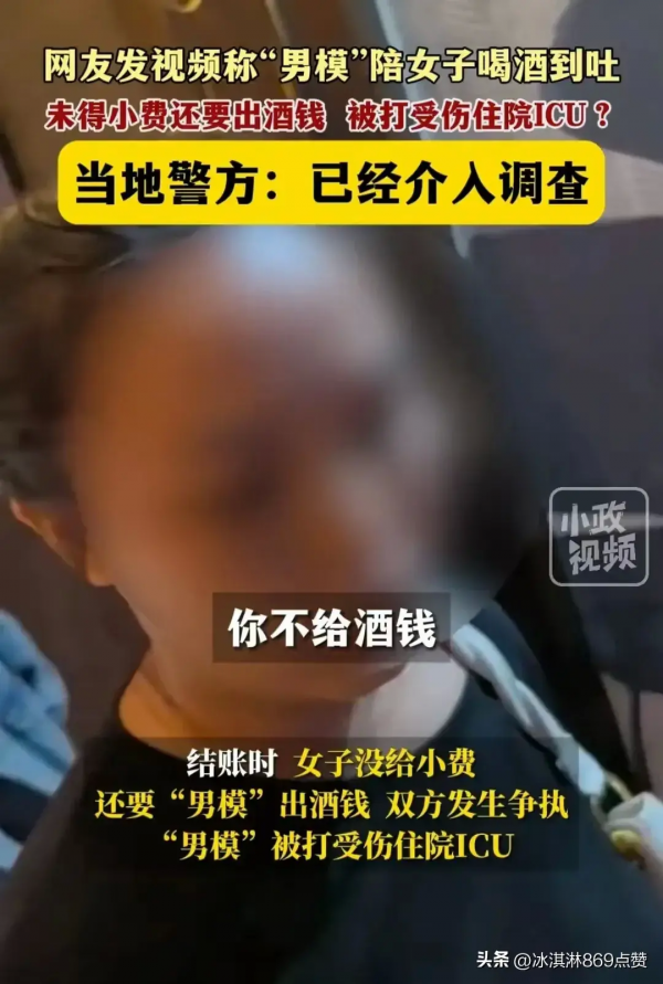 下手还挺狠的,把陪陪打进了icu,还缝了十几针,要说这位男模也是够倒霉的,兢兢业业的工作,被对方灌酒灌到吐,不仅拿不到小费,反而还挨了一顿打,最后,自己不仅没有挣到钱,还搭进去一大笔医疗费,而这件事情警方已经介入,目前正在调查当中。