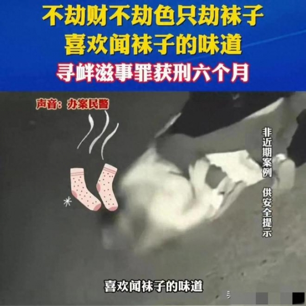 只剩下女孩一个人在风中凌乱,事后女孩立刻拨打报警电话。北京警方根据监控录像,很快就找到了该名男子,并将其逮捕归案。当警方进入该名男子住所时,被眼前的一幕给惊呆了。他在家中全部挂满了女性用的袜子,而且看起来全都是已经穿过的。而据这名男子描述,他因为从小就非常喜欢袜子的味道,特别是女孩穿过的袜子上的脚臭味,让她非常的入迷。