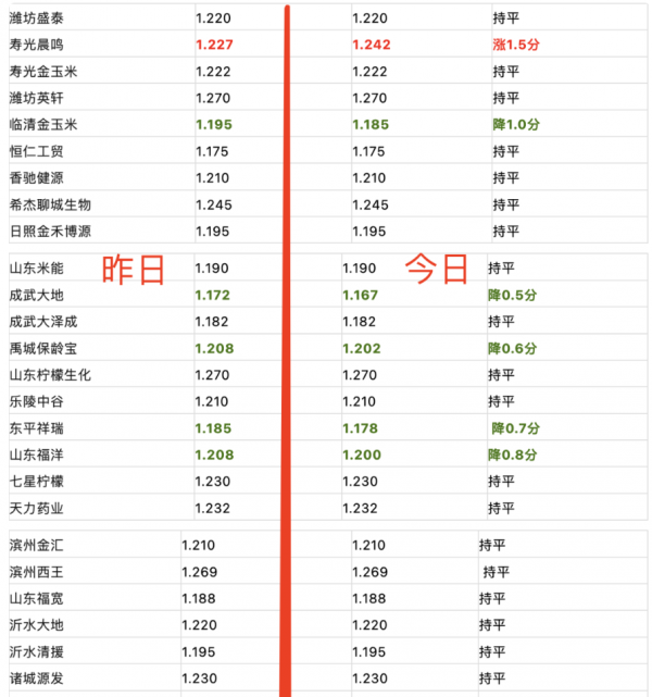 接下来我们继续关注一下山东产区的玉米最新报价消息。