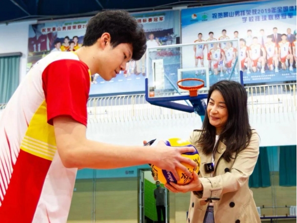 郭晶晶的到访恰逢景山学校65周年校庆,而该校男排也迎来建队50周年。
