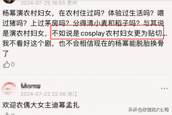 一时间,网络上各种声音此起彼伏,有人力挺杨幂这次的突破,认为演员就应该勇于挑战不同类型的角色;也有人质疑她是在"强行扮嫩"、"消费农村题材",是在用"不走心的表演"糊弄观众