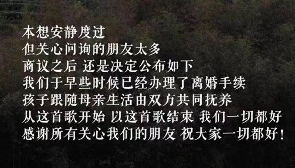 遗憾的是到了10月14日,还是听到了他们离婚的消息。李亚鹏海哈金喜官宣离婚,"本想安静度过,但关心询问的朋友太多,商议之后,还是决定公布。"