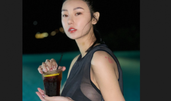 在苏琳的这张照片中,她穿着黑色的比基尼,外面穿着半透明的黑纱,可以清楚地看到里面穿的比基尼,隐约可见美丽的身体。