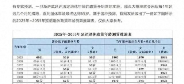 这个文章出来之后,真的是炸了锅。关于退休年龄,我们目前女性是50周岁,女干部是55周岁,男性是60周岁。延迟到65周岁,那女性延迟是10至15年,这个延迟幅度大多数女性都认为无法接受。