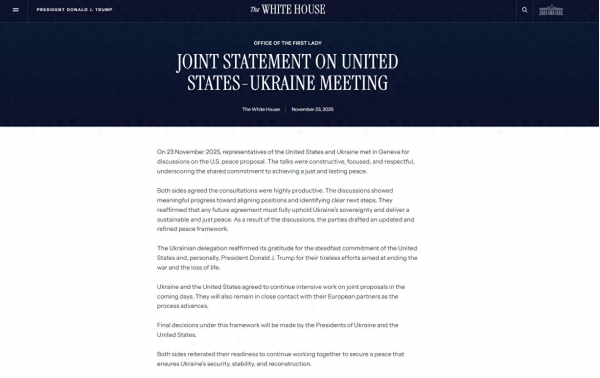 稍后,美国白宫网站刊登一份声明称,美国和乌克兰代表在日内瓦的讨论显示,双方在协调立场和明确后续步骤方面取得了实质性进展。双方重申,任何未来的协议都必须充分维护乌克兰的主权,并实现可持续和公正的和平。会谈结束后,双方起草了一份更新和完善的和平框架。
