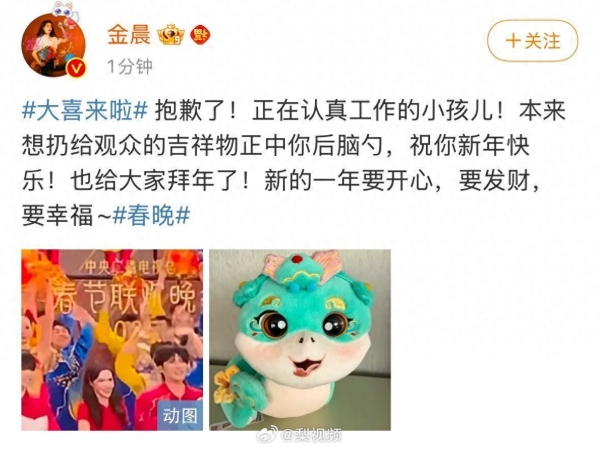 - "建议春晚给金晨颁发'年度喜剧人奖',这失误比小品还精彩!"