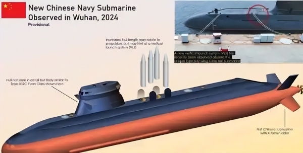 虽然报道中并未透露新潜艇的名称,但指出它最早是在2024年中经西方卫星图像捕获,在湖北武汉的船厂首度曝光。
