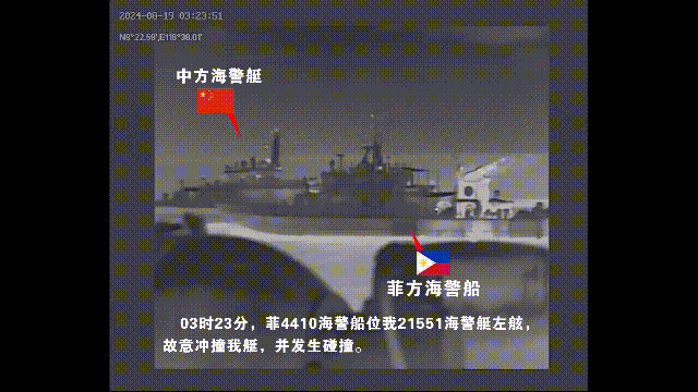 事件发生后,中国发布了一段有关录像,可以清楚地看到菲律宾船只突然改变航向,并与我们产生了冲突。
